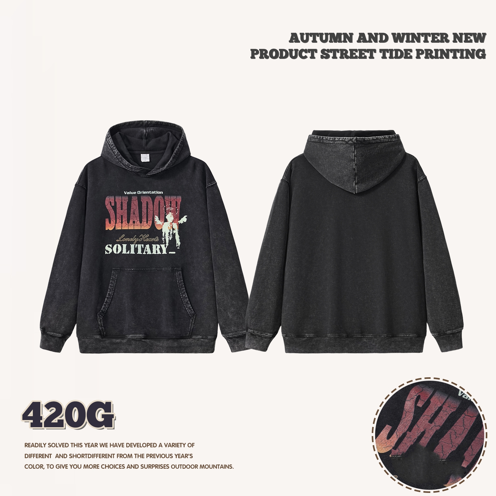• American heavyweight cotton 420G washed sweatshirt high street hooded sweatshirt