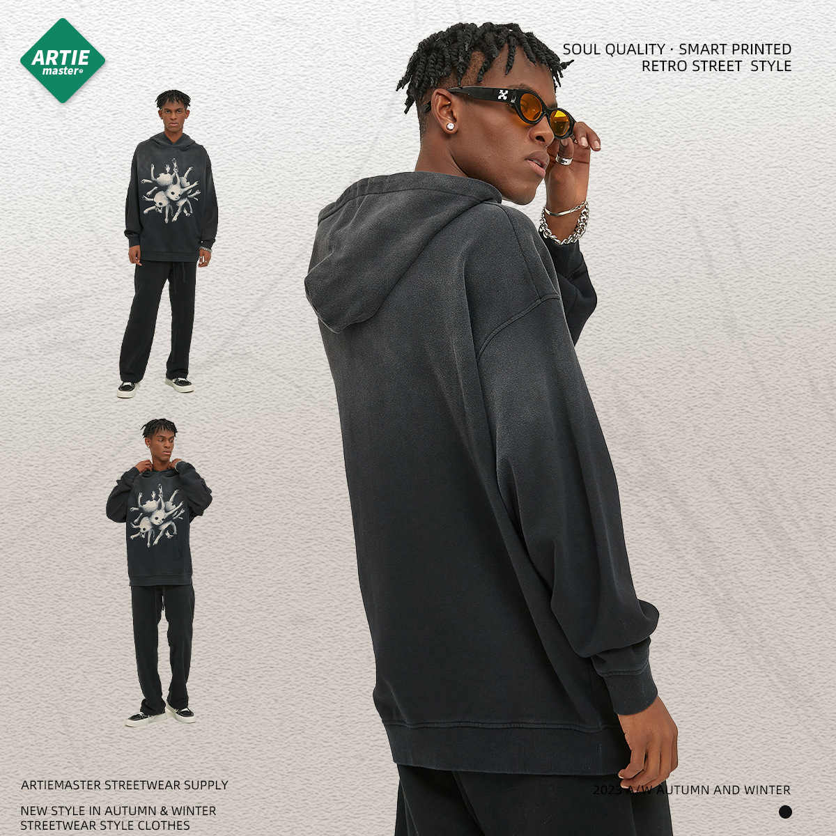 • Spray Monkey Gradient Washing Digital Printing Men's Sweater Fashion Brand Loose Hoodie