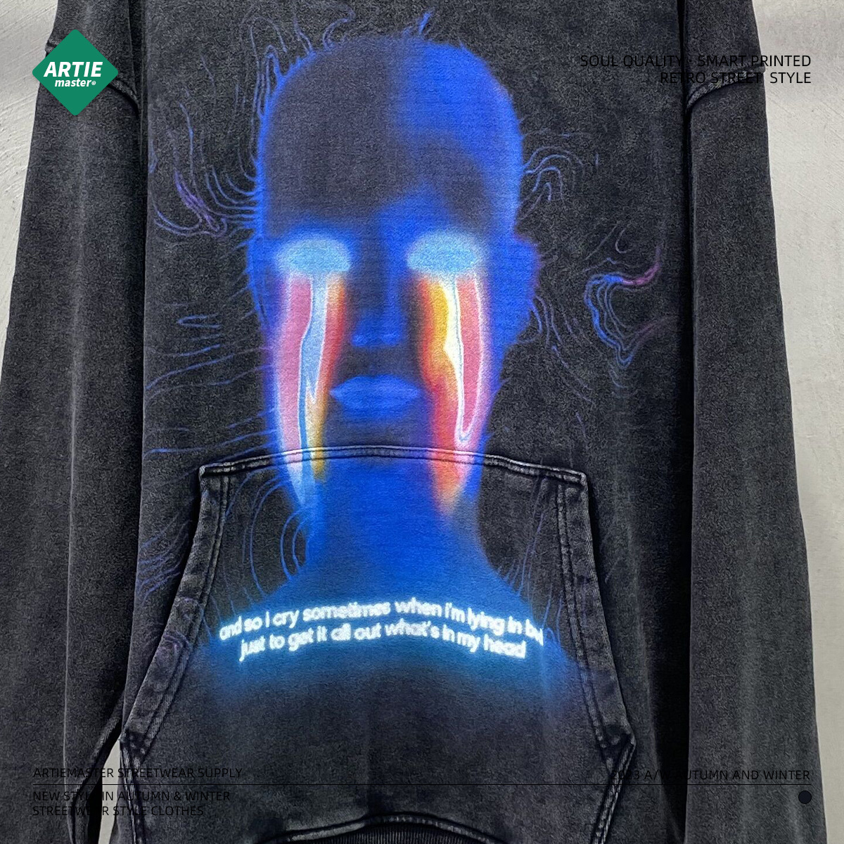 Dark style snowflake hooded sweatshirt men's distressed loose digital printed men's hoodie