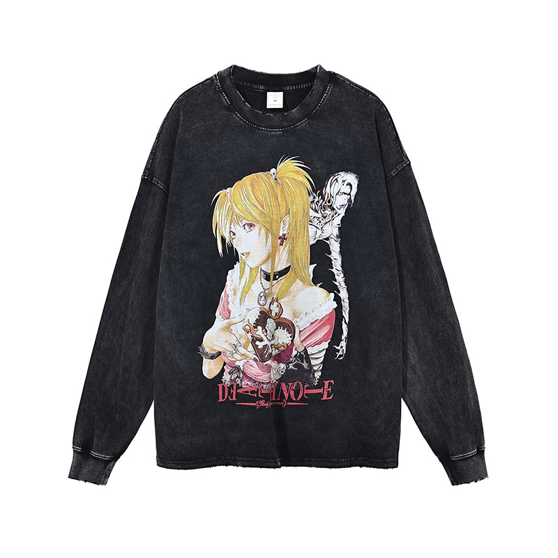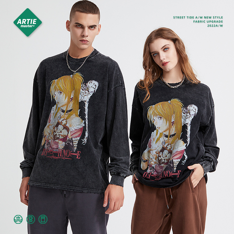 Digital printing long sleeve retro trendy dark washed batik distressed t-shirt