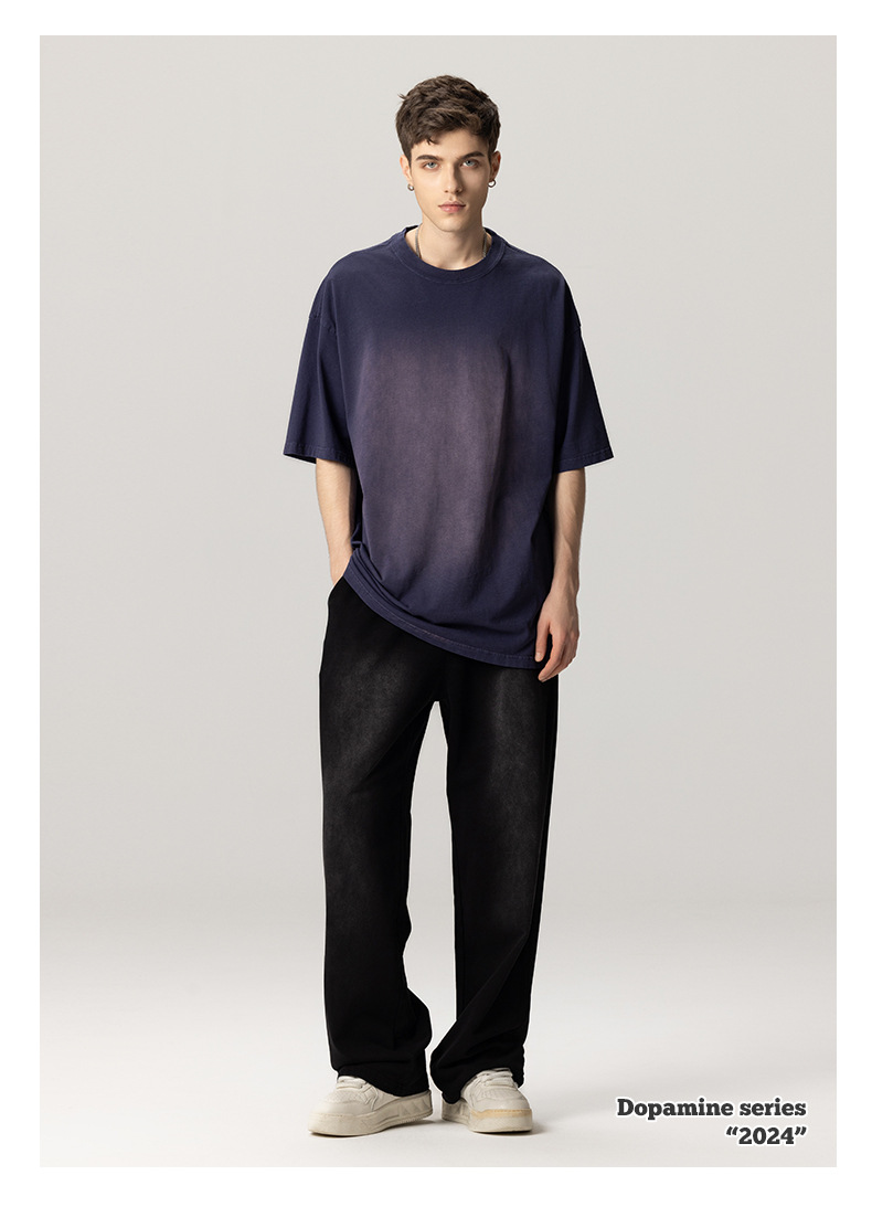 American high street washed distressed men's short sleeves pure cotton washed short sleeves
