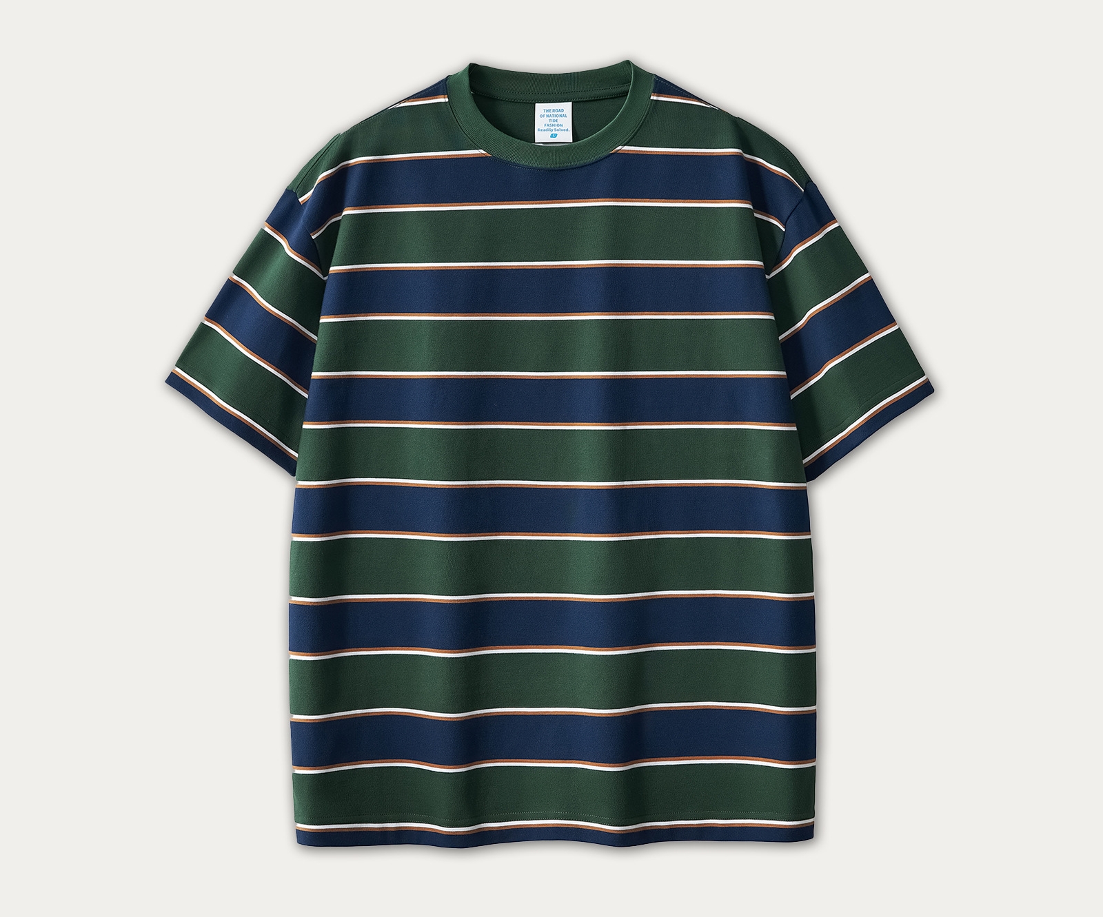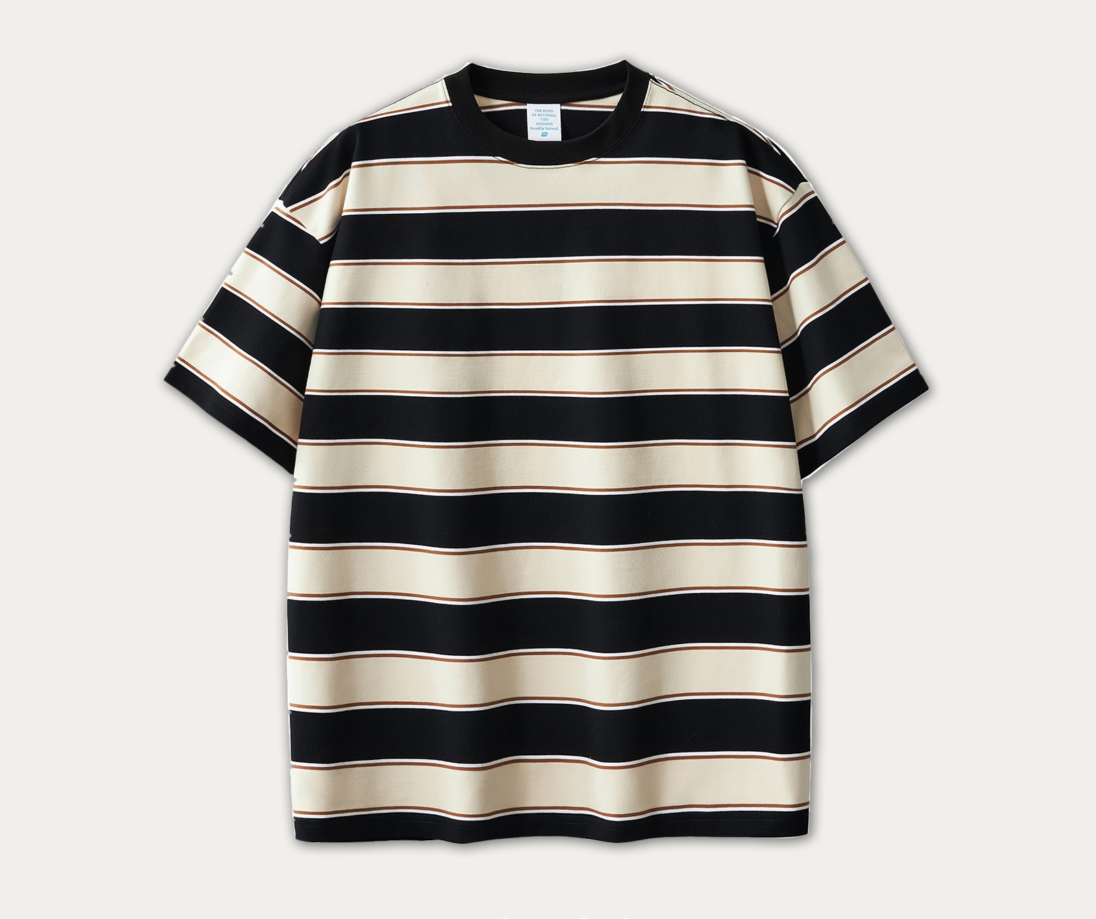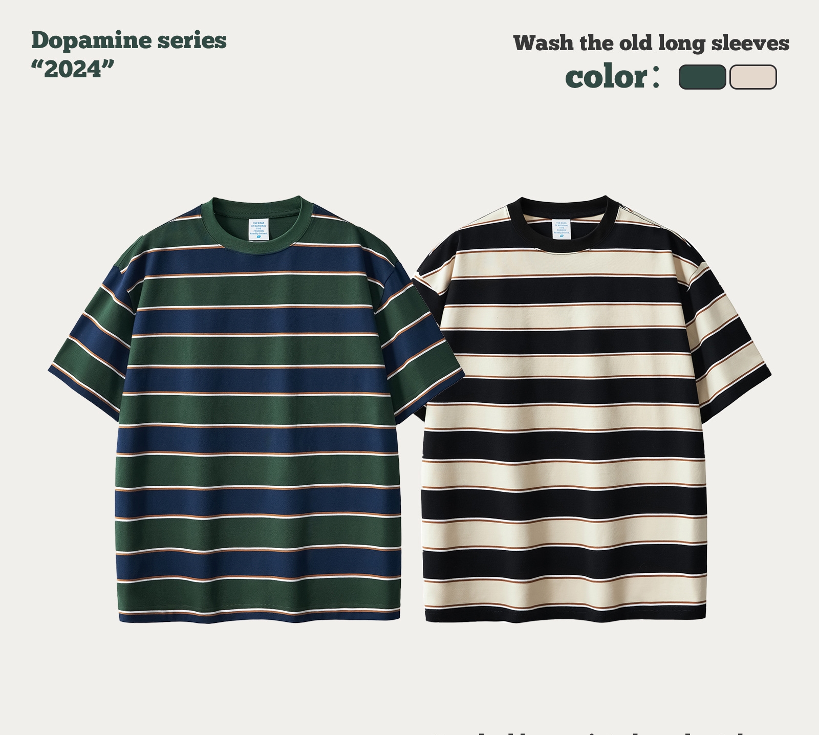 • Heavy cotton short-sleeved T-shirt men's trendy striped retro men's T-shirt