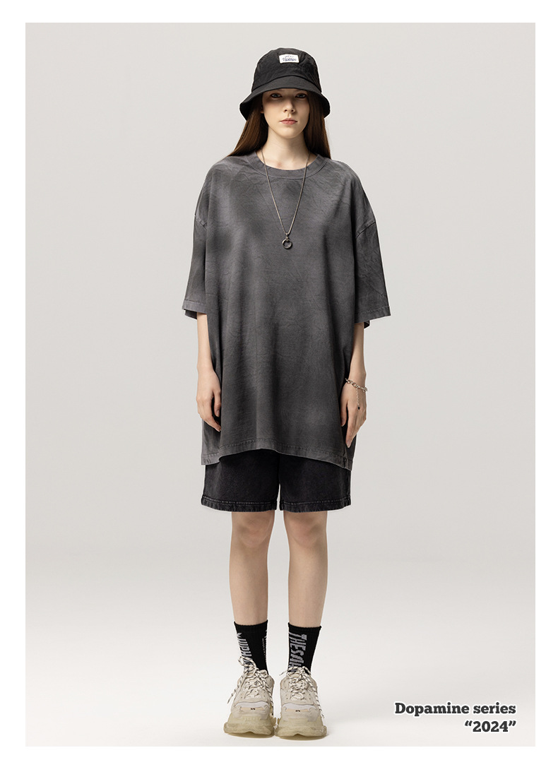 • Heavy dirty wash short-sleeved T-shirt men's retro washed high street fashion half-sleeved cotton men's short-sleeved