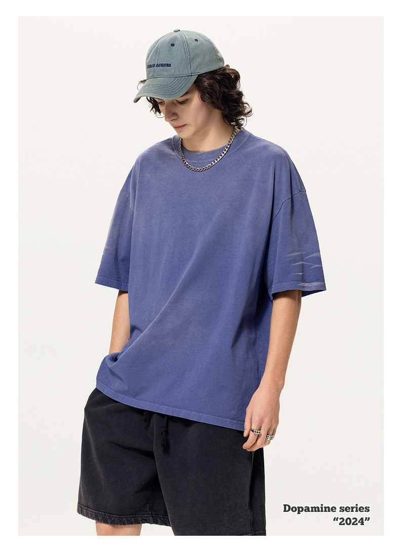 • Heavy washed men's short-sleeved cotton half-sleeved short-sleeved T-shirt men