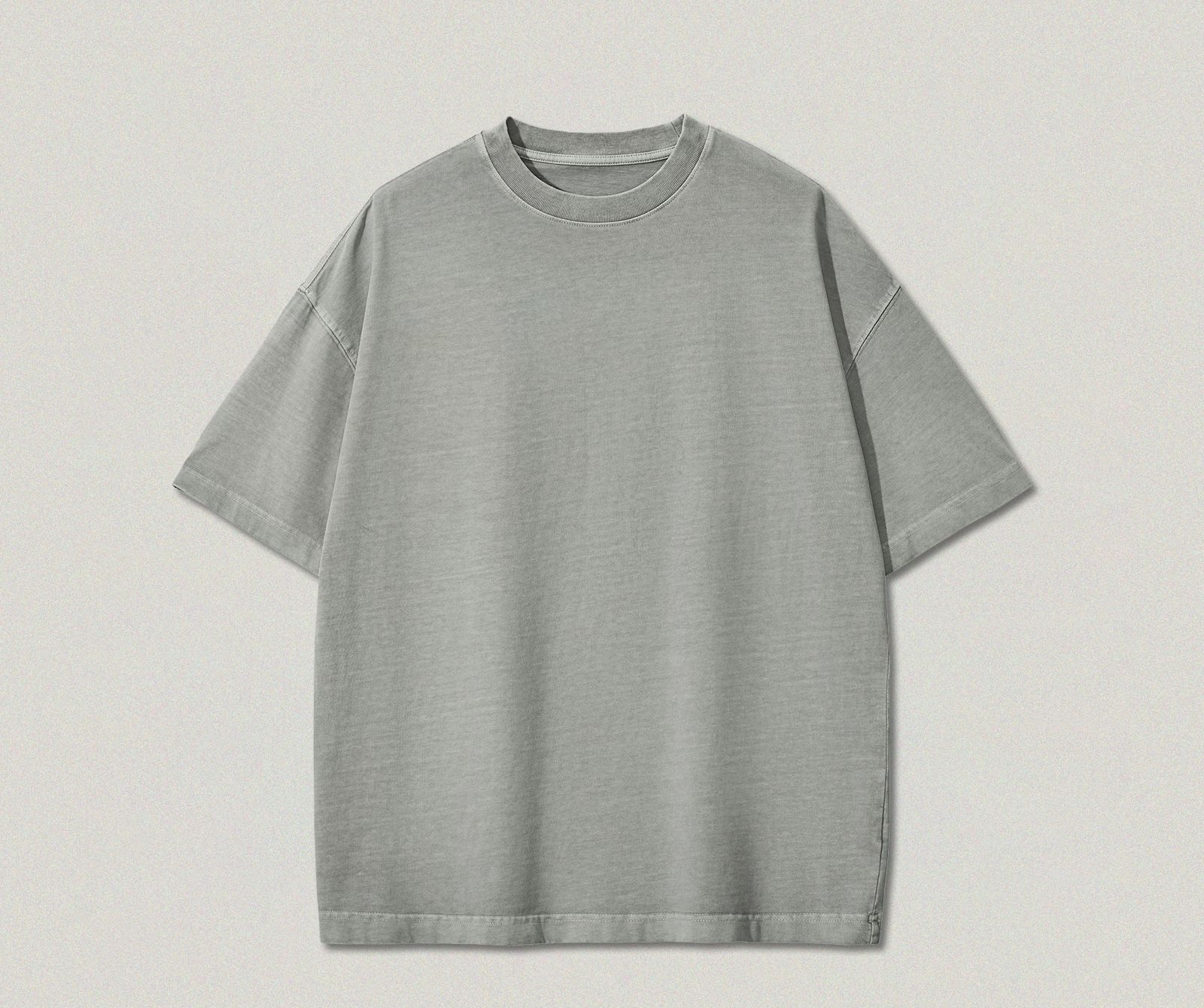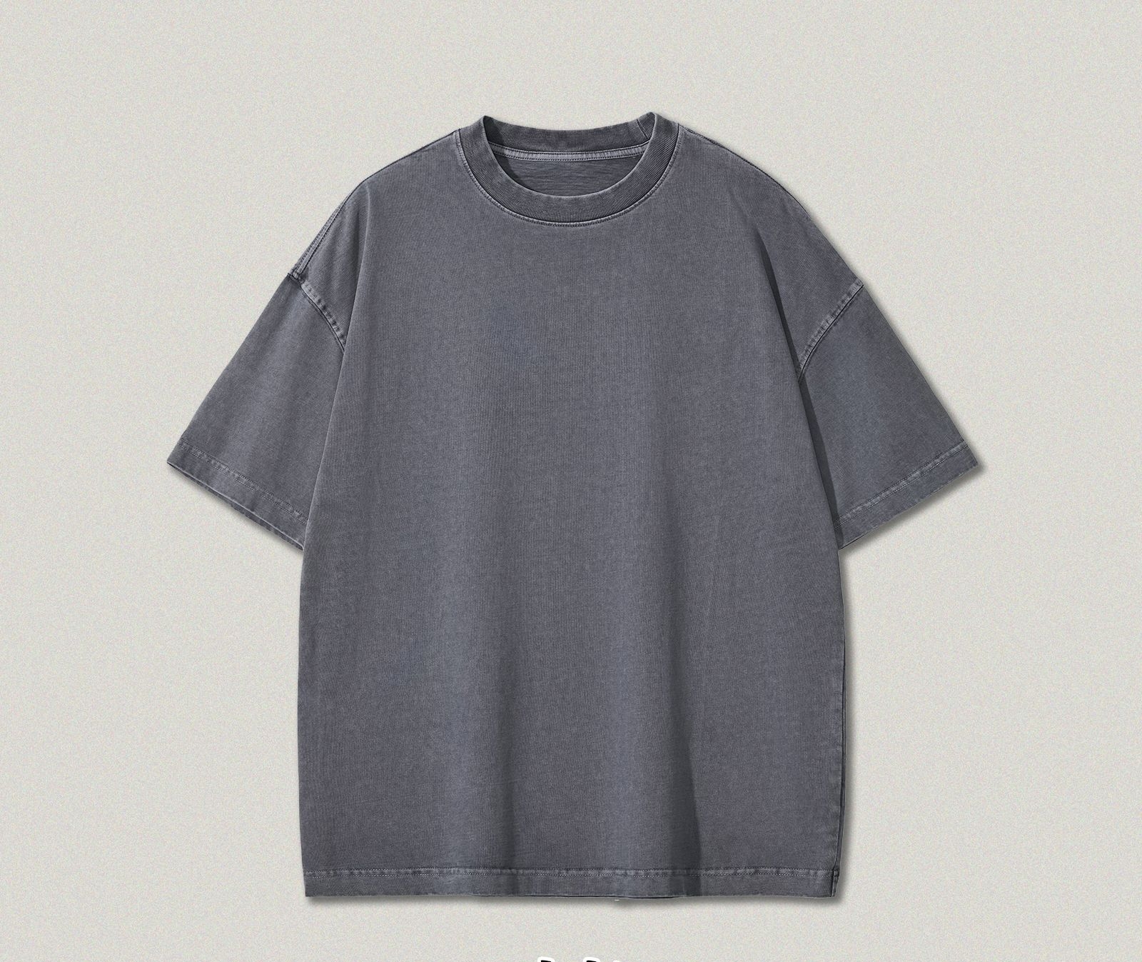 • Washed heavyweight cotton short-sleeved men's high street retro washed old fashion brand men's t-shirt